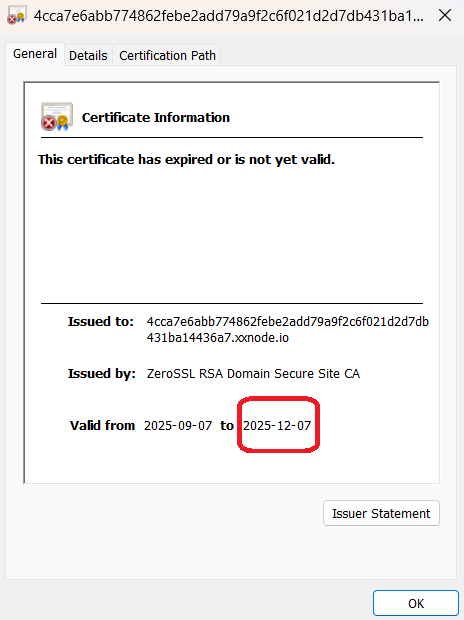 This is an issue on the server side we donât control. It has to do with the zerossl infrastructure being unable to talk with the gateway running on the node.