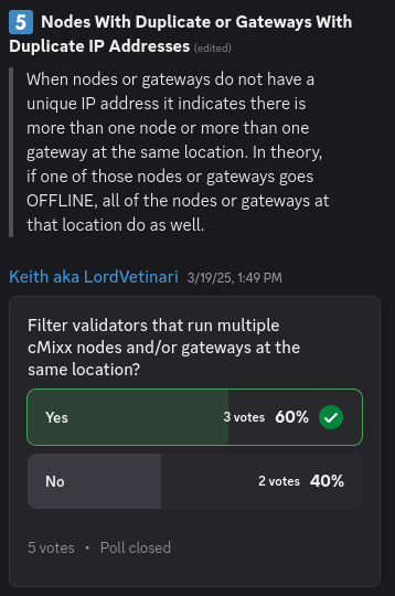 Filter validators that run multiple cMixx nodes and/or gateways at the same location?